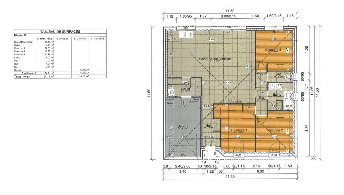 Le coin nuit dispose de trois chambres avec placards intégrés, d’une salle d’eau et de WC indépendants. Une arrière-cuisine pratique et un garage de 15 m2 complètent ce bien.