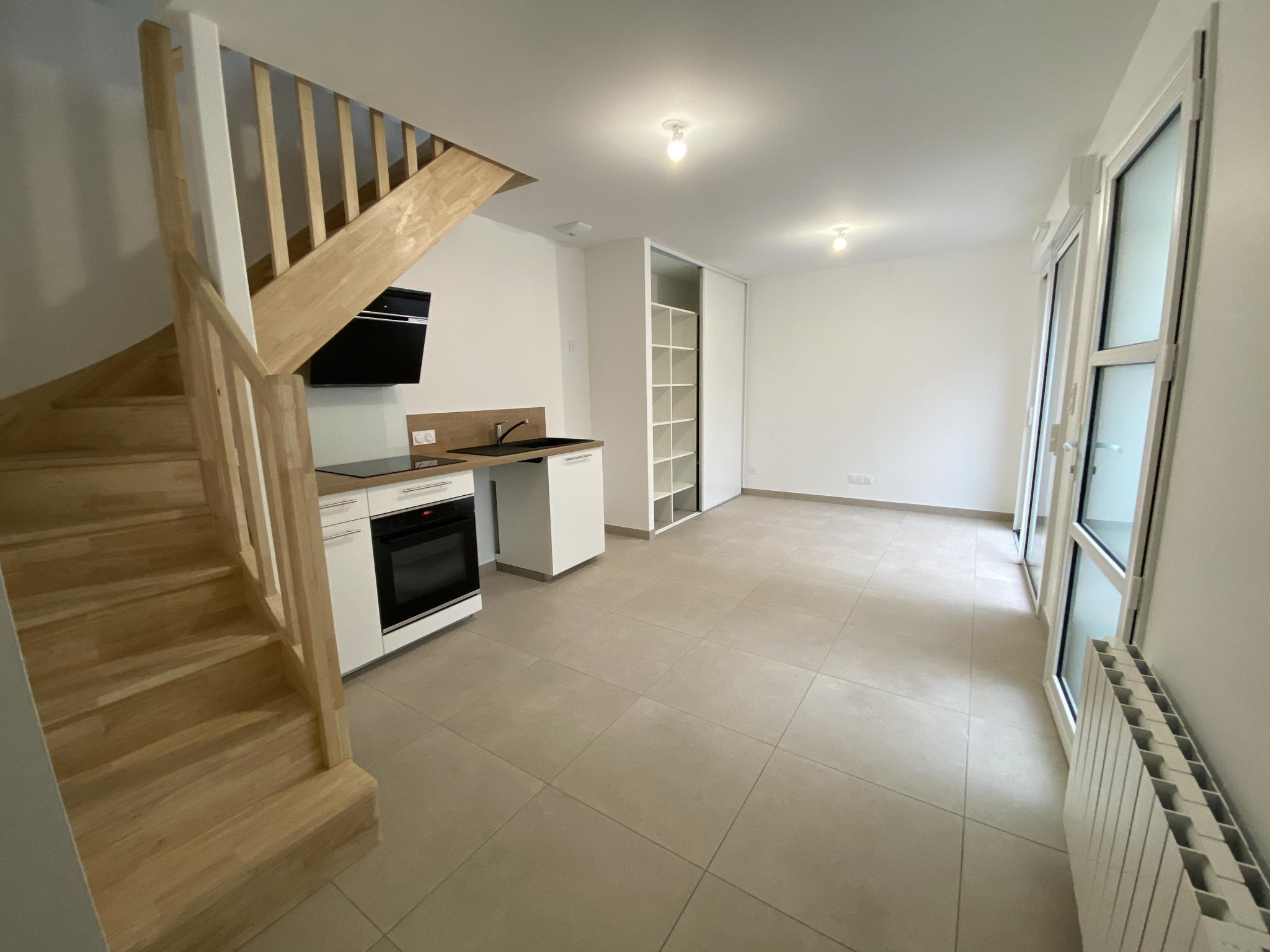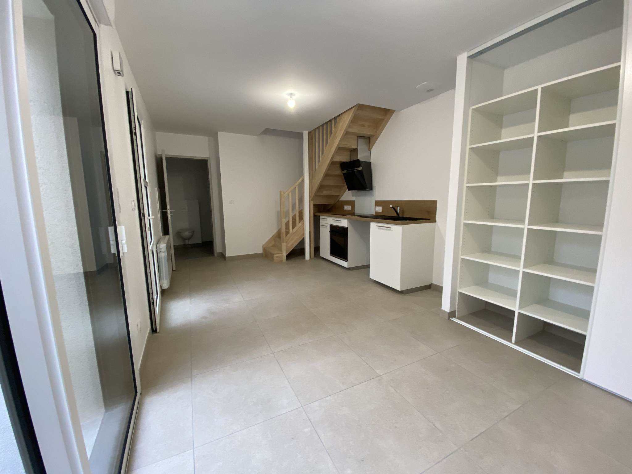 Au rez-de-chaussée vous découvrirez une piece de vie avec cuisine amenagéee et équipée ainsi qu'une salle d'eau et un wc.