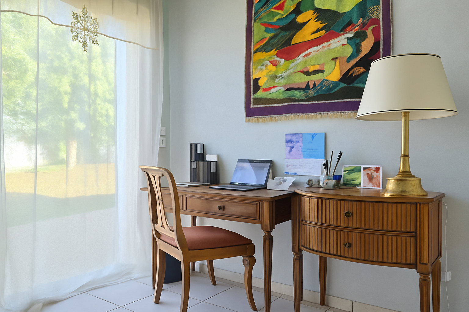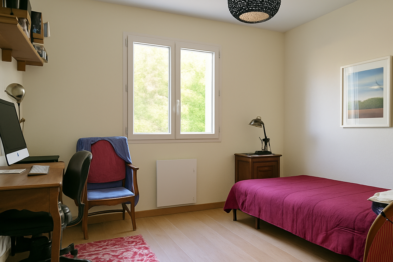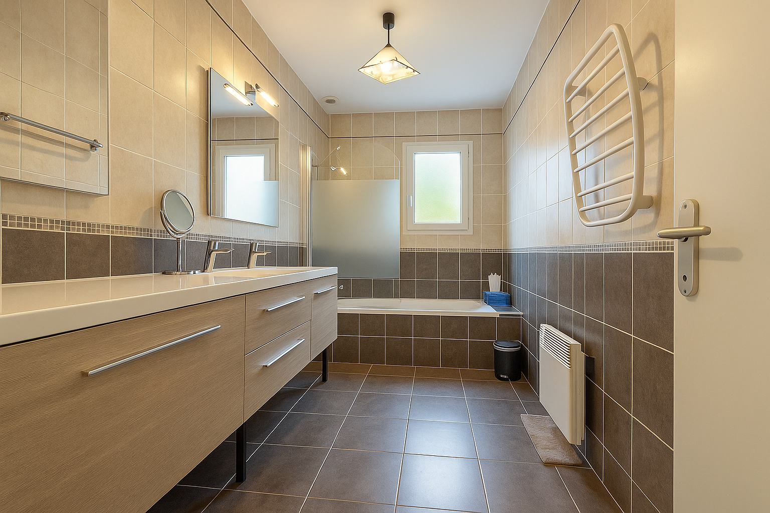 Vous profiterez aussi d’une buanderie, d’un bureau supplémentaire, ainsi que d’un garage attenant. À l’extérieur, un carport complète l’ensemble. Le devant de la maison, bitumé et soigné, facilite le stationnement, tandis qu’à l’arrière, le jardin clos et sans vis-à-vis offre un véritable havre de paix.