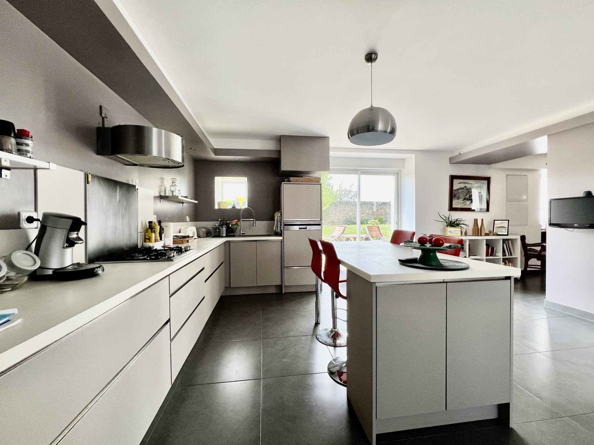 Profitez d'une élégante maison de 157 m2 avec une spacieuse pièce de vie ouverte, idéale pour des moments de partage. La maison compte 4 chambres, dont une pratique au rez-de-chaussée et 2 dotées de salles de bain privatives alliant intimité et confort.