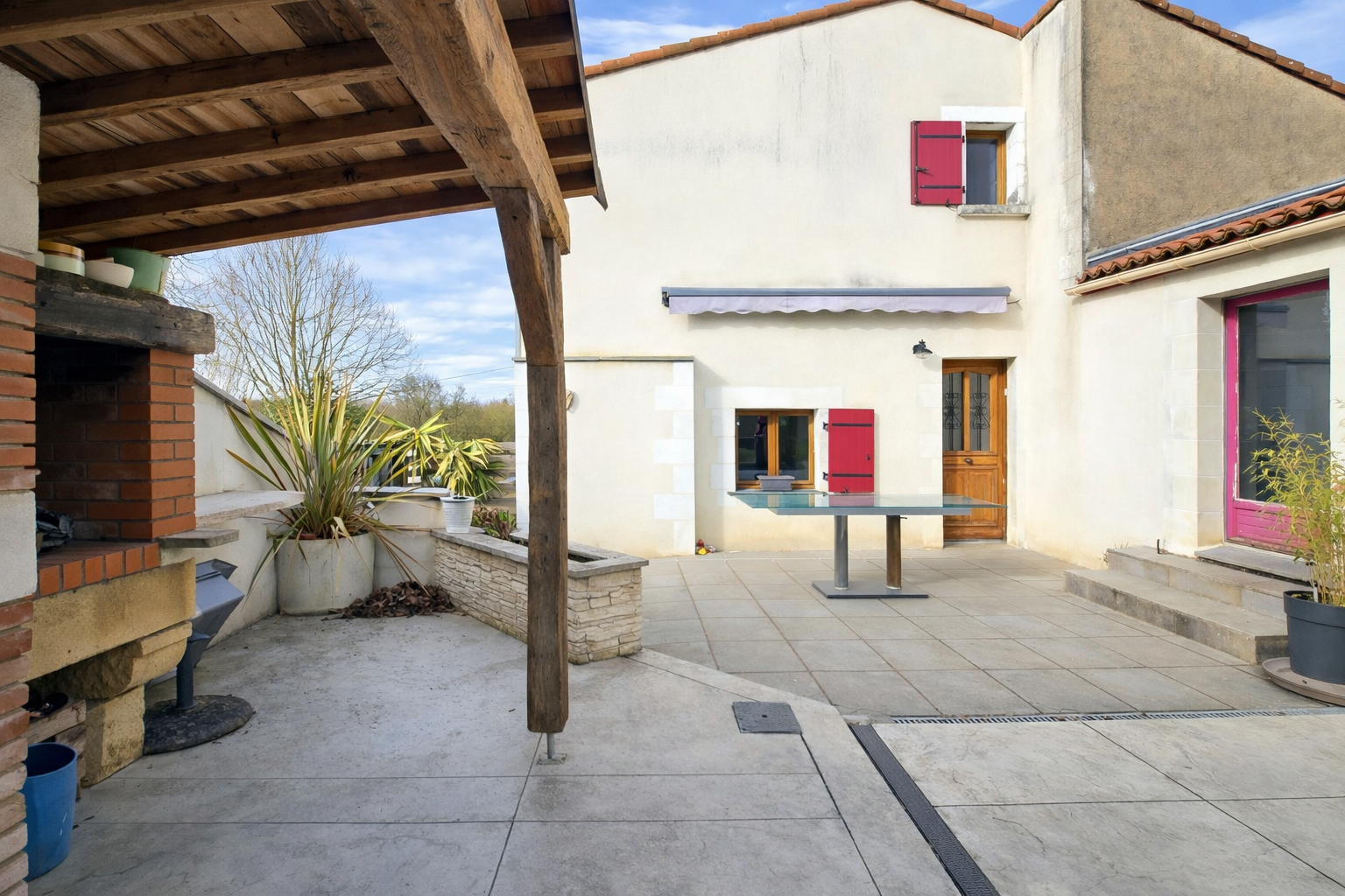 À l’extérieur, le terrain entièrement clos, sans aucun vis-à-vis, accueille une grande terrasse, idéale pour profiter pleinement des beaux jours dans un environnement paisible.