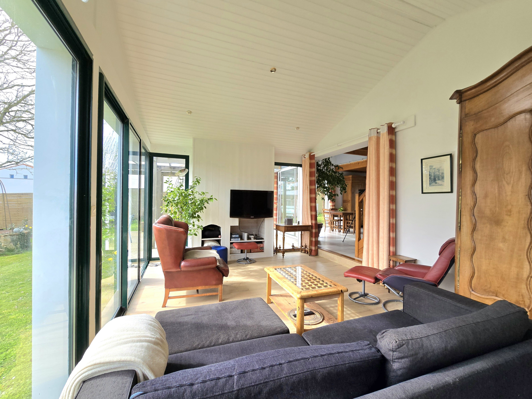 En plein cœur de Vallet, à proximité immédiate des commerces et des services, cette spacieuse maison de 150 m2 offre un cadre de vie privilégié sur une parcelle paysagée de 945 m2, sans aucun vis-à-vis. Dès l’entrée, la luminosité et les volumes généreux de la pièce de vie séduisent instantanément. Parfaitement exposée, elle se prolonge sur un espace salon convivial et une cuisine aménagée et équipée, idéale pour partager des moments en famille ou entre amis. Toujours de plain-pied, une arrière-cuisine, une buanderie et un WC indépendant apportent un confort supplémentaire au quotidien.