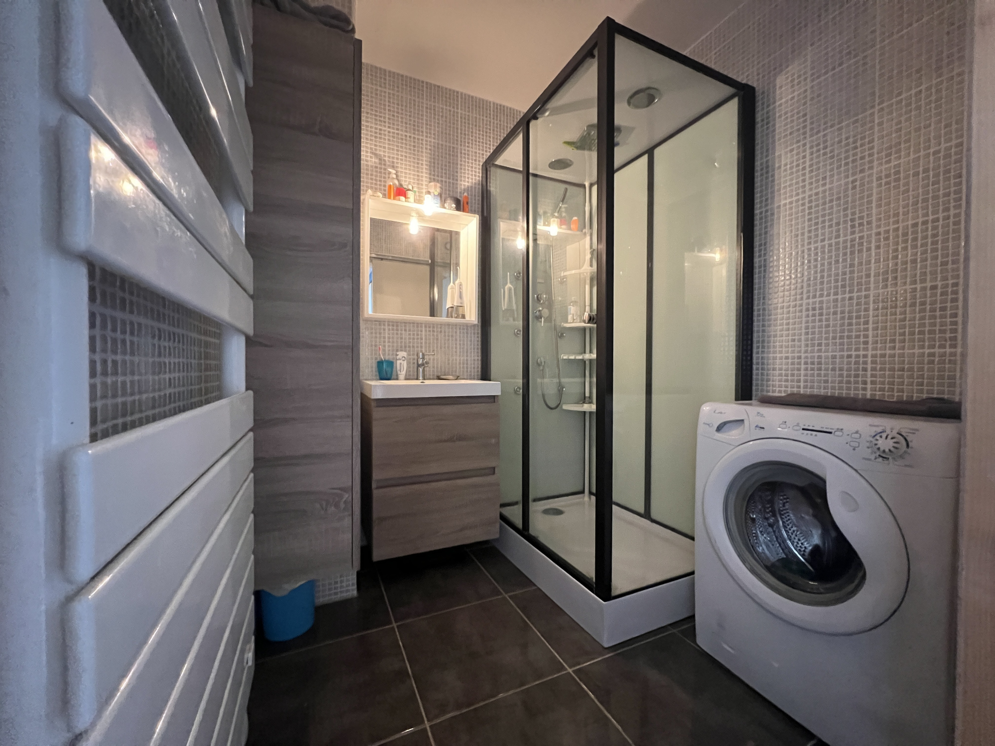 Salle d’eau avec douche et meuble vasque