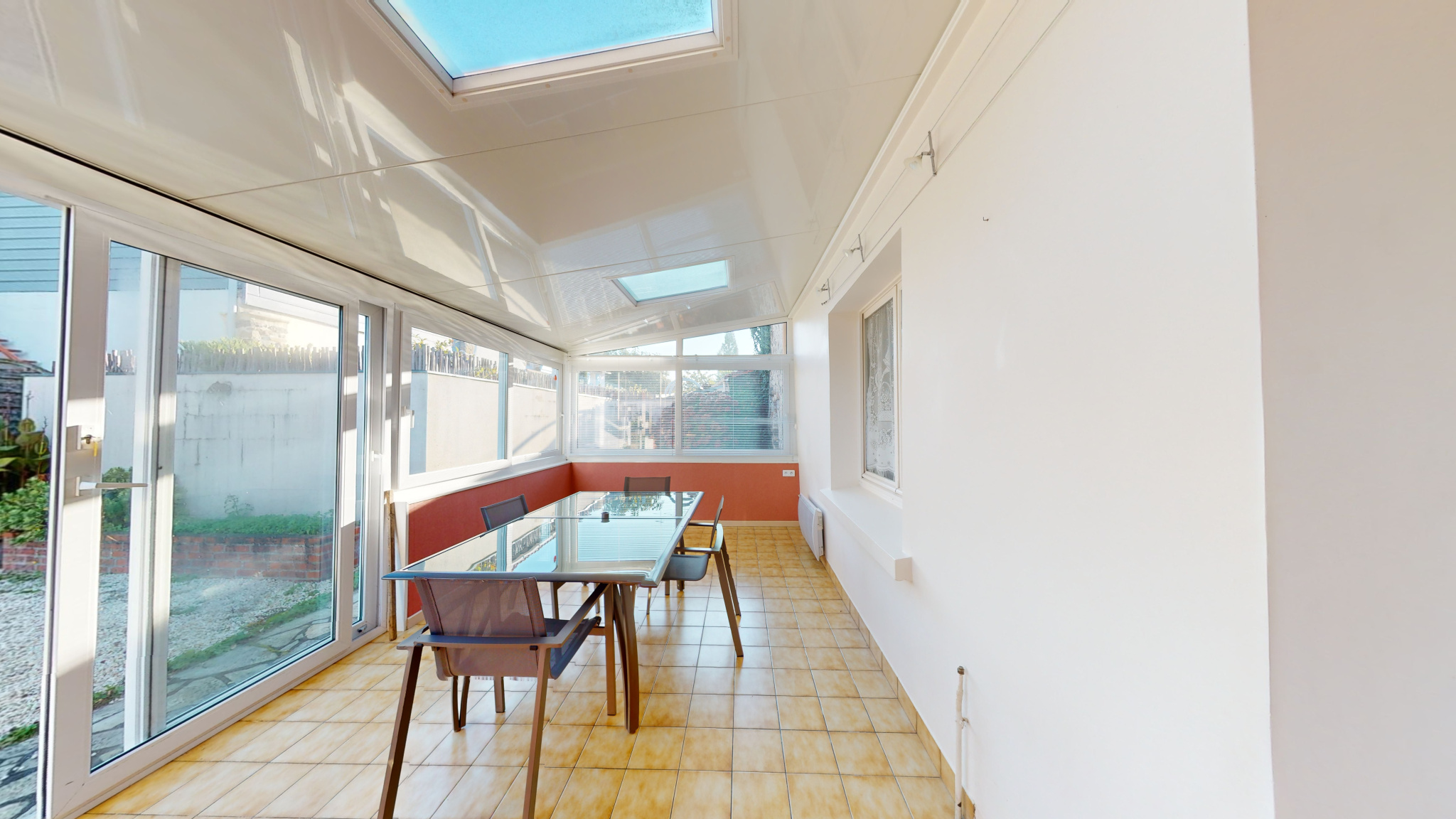 Dès l’entrée, vous serez charmé par une vaste pièce de vie équipée d'une cuisine ouverte et aménagée, ainsi qu'une cheminée avec insert pour vos soirées d'hiver. Une véranda chauffée et isolée de 16 m2 prolonge cet espace, offrant une vue directe sur le jardin.