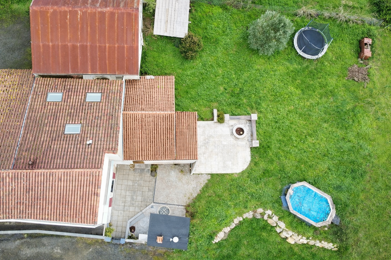 À l’extérieur, le terrain entièrement clos, sans aucun vis-à-vis, accueille une grande terrasse, idéale pour profiter pleinement des beaux jours dans un environnement paisible.