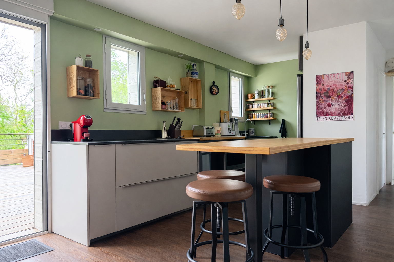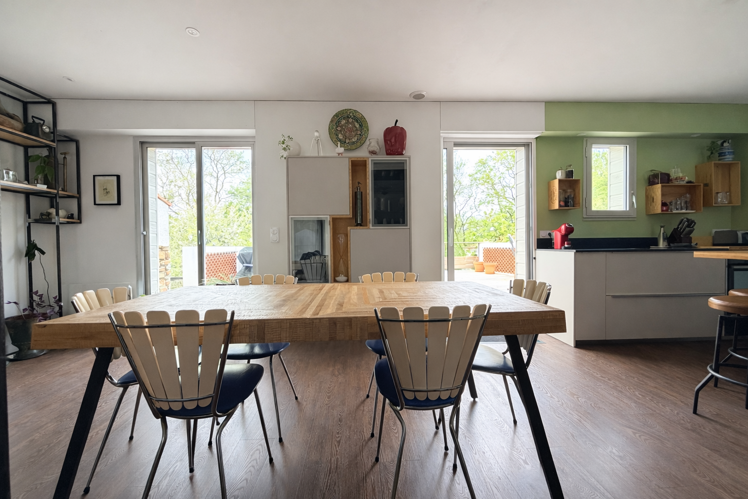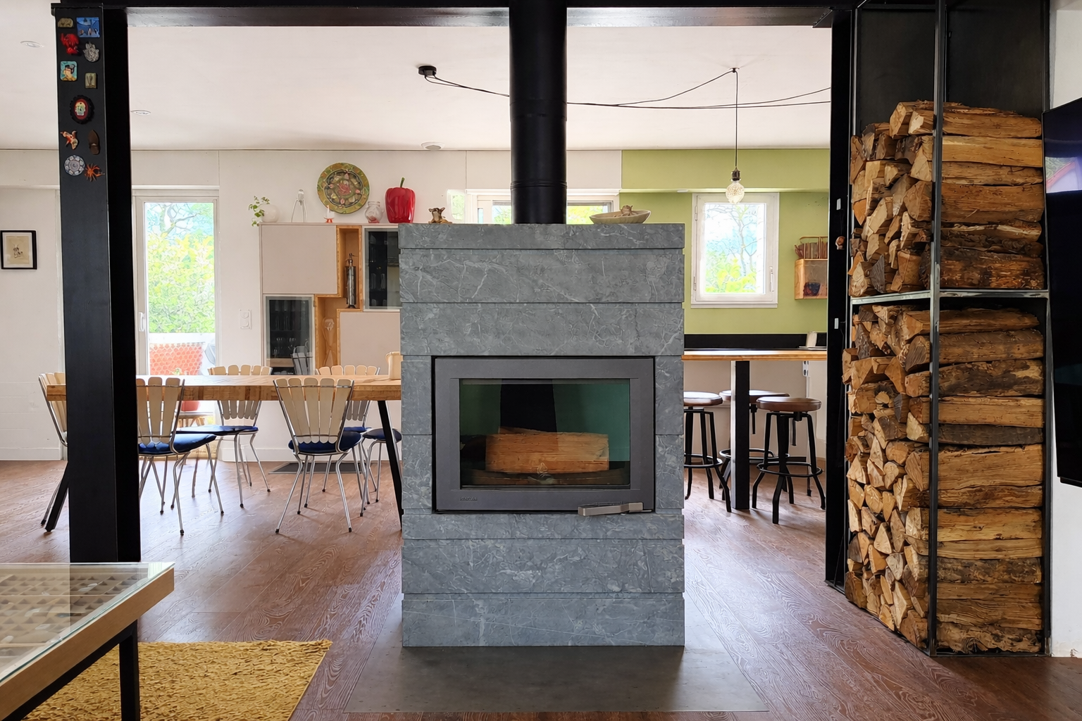 Ce joli pavillon familial offre une belle pièce de vie lumineuse avec cuisine aménagée et équipée, agrémentée d’un poêle à bois haut de gamme avec pierre réfractaire, idéale pour un confort chaleureux et économique.