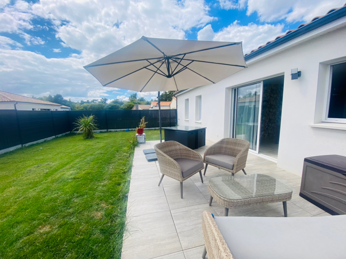 VALLET - 44330 - A VENDRE en EXCLUSIVITÉ chez COCOONING IMMOBILIER, très belle maison de plain-pied de 2020, lumineuse & exposée sud comprenant 3 chambres, cuisine entièrement aménagée et équipée, garage, le tout sur 407 m2 de terrain. Référence 1080AM VISITE VIRTUELLE DISPONIBLE SUR NOTRE SITE INTERNET - Le bon coin pour se loger, sur la commune de Villedieu-la-Blouère, dans un écrin de verdure, vous serez totalement séduit par cette charmante maison familiale de 2020 et son magnifique jardin arboré et entièrement clos, avec terrasse et espace très cosy. Dès l'entrée, vaste salon-séjour donnant sur une cuisine entièrement aménagée et équipée. Une belle pièce de vie très agréable avec sa lumière traversante grâce à ces nombreuses ouvertures et l'accès à une terrasse avec vue panoramique sur le jardin, sans aucun vis à vis. Vous serez totalement séduit! Attenant à la cuisine un garage avec espace buanderie et espace de rangement, porte motorisée et porte de service permettant un accès sur l'avant et l'arrière de la maison. Bénéficiez également d'un grand coin nuit, au calme, comprenant 3 belles chambres avec emplacements placards, wc et une salle d'eau avec douche italienne. Le tout édifié sur un adorable jardin de près de 407 m2, clos et arboré, sans vis à vis, composé d'une belle terrasse plein sud et deux places de stationnement sur l'avant. Ses atouts: Outre le charme et les volumes généreux, cette maison vous amènera tout le confort que vous souhaitez sans aucun travaux à prévoir. Entièrement domotisée, vous pourrez profitez de tous les avantages et la sécurité à distance. La maison et ses équipements sont encore tous sous garanties. Idéalement placée vous profiterez en 8 mn de tous les avantages de Saint-Macaire-en mauge et en 15 mn de ceux de Cholet, sans oublier les commerces de proximités et les écoles qu'offre cette jolie commune. Tout est conçu, dans le garage, pour que cette pièce puise devenir, à moindre frais un nouvel espace de vie. Vous avez également la possibilité d'agrandir votre maison ou créer un carport sur un des cotés de la propriété. Prestation rare et de grande qualité. Idéal pour une famille. A visiter sans tarder! Pour visiter et vous accompagner dans vos projets, contacter Ambre MAGNAN agent commercial au 02.28.00.72.40 ou par mail: ambre@cocooning-immobilier.com- RCS 8206811380013 - Réf 1080AM à 245 000 euros honoraires d'agence inclus à la charge du vendeur. Nous pouvons également vous accueillir dans notre agence 'Cocooning Immobilier' située au 61 rue des Forges à Vallet. Réf. 1080AM