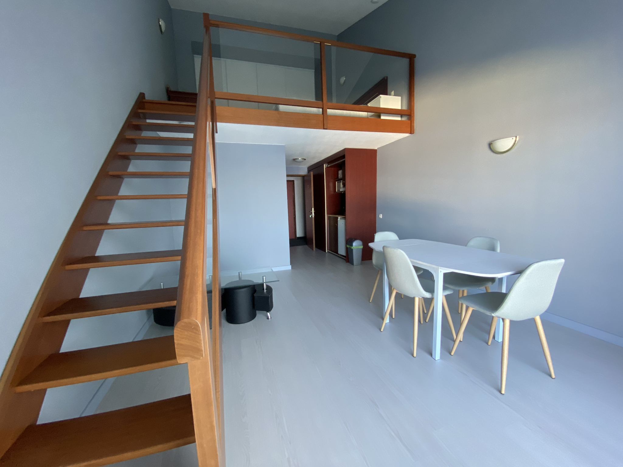 Situé à mi-chemin entre La Chapelle Heulin et La Haie Fouassière dans une résidence sécurisée avec parking clos. Au rez-de-chaussée, appartement refait à neuf en duplex avec pièce de vie et kitchenette, salle d'eau avec WC, à l'étage une grande mezzanine avec dressing. L'appartement dispose également d'une place de parking dédiée et d'une terrasse privative.