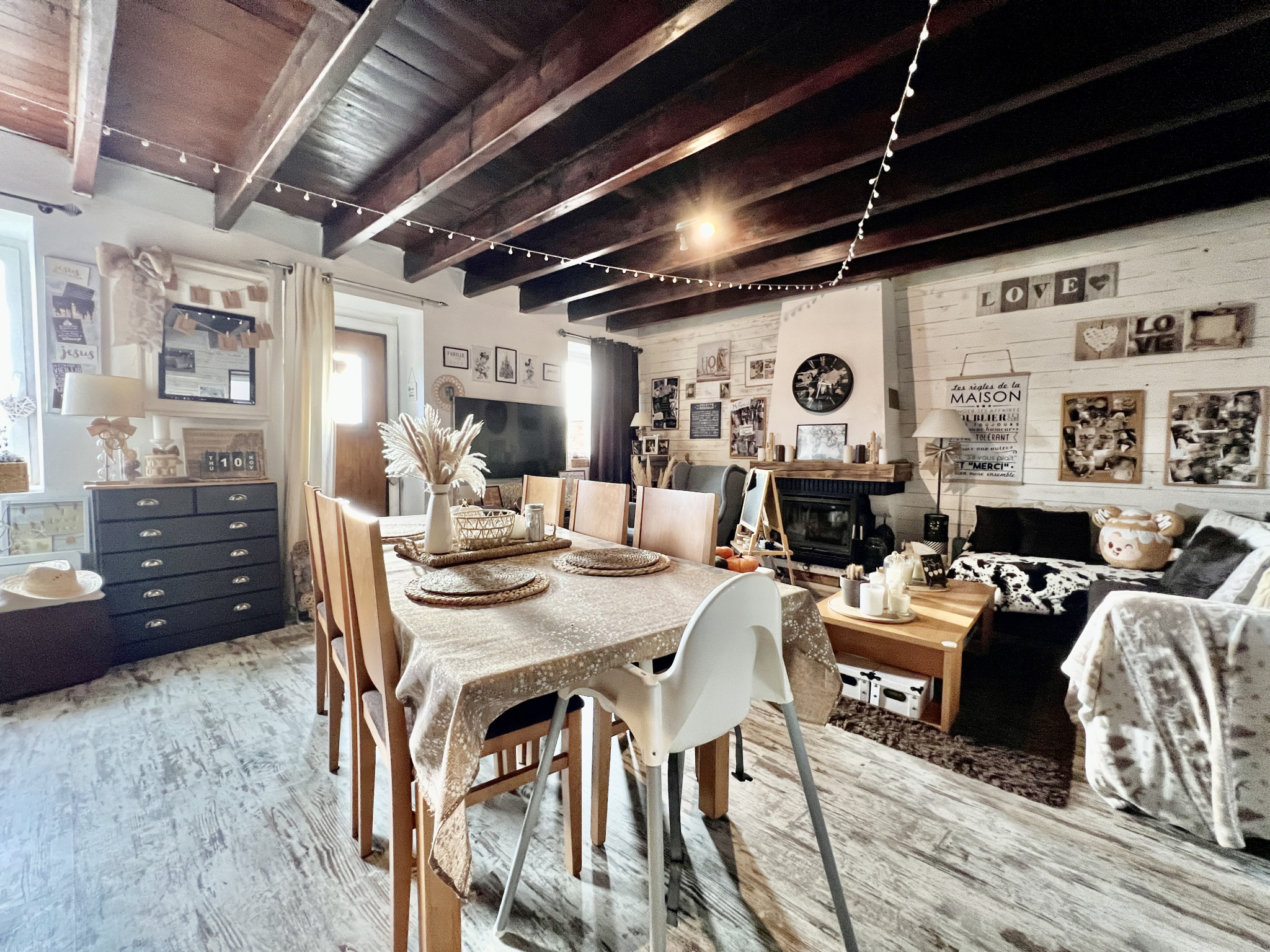 En franchissant le seuil, le rez-de-chaussée vous accueille chaleureusement avec une pièce de vie ornée d'une cheminée créant une atmosphère conviviale. La cuisine, équipée et aménagée, s'ouvre sur une terrasse intime avec un cabanon, parfaite pour savourer des moments en plein air.