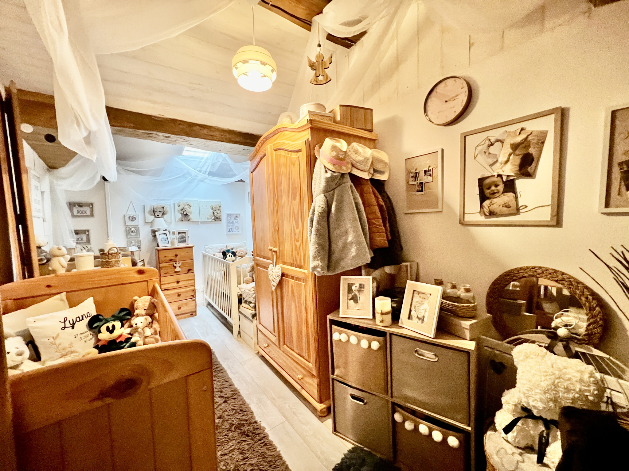 À l'étage, un palier dessert deux chambres, créant un espace nuit confortable et reposant.