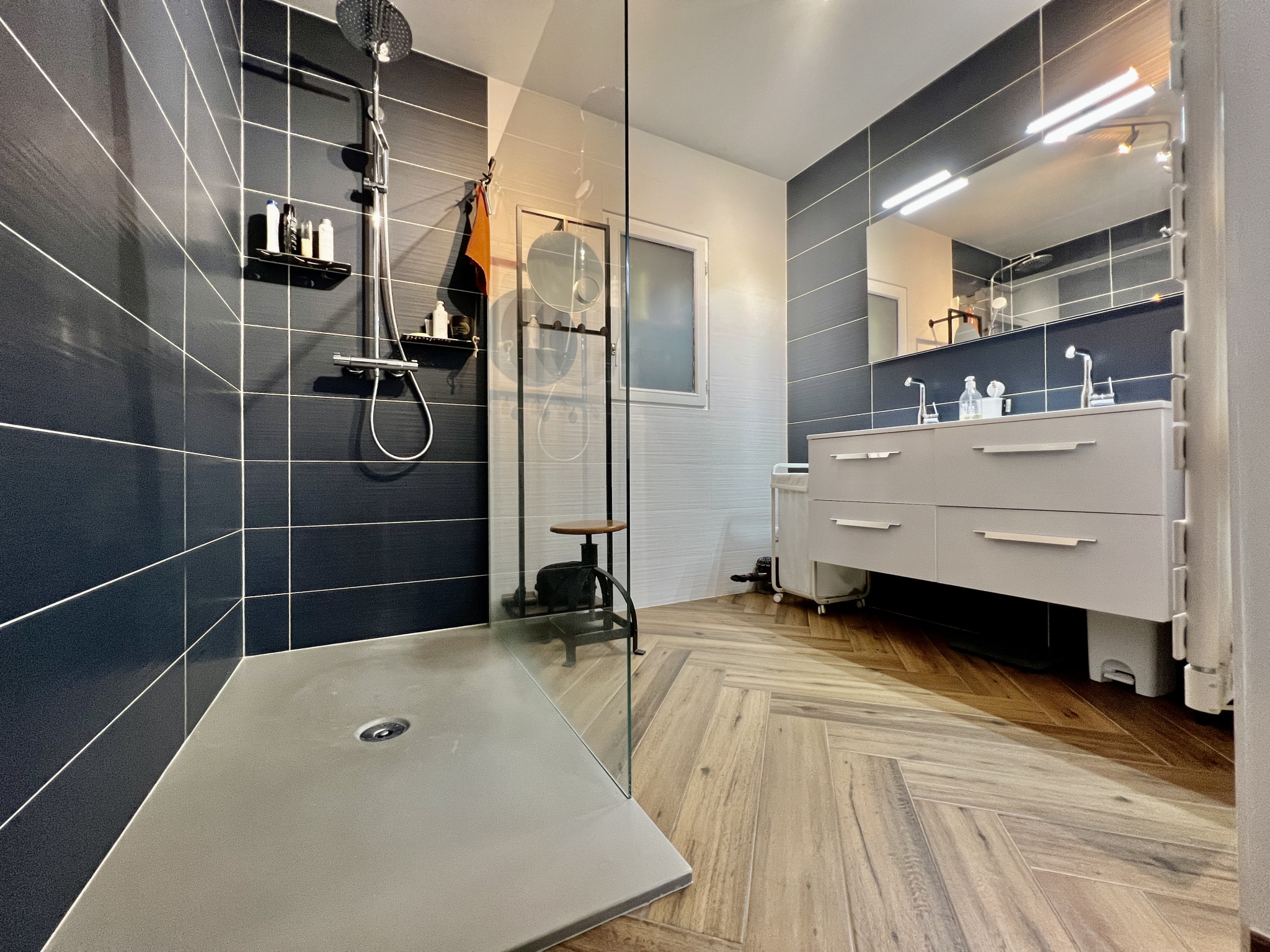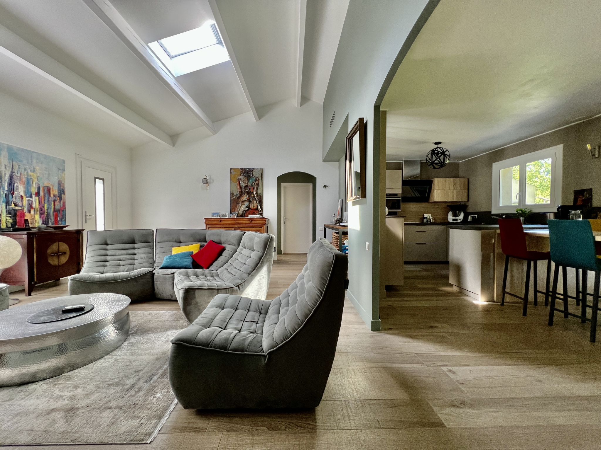 Emplacement unique pour cette maison à seulement quelques pas de toutes les commodités. Au coeur de son environnement verdoyant, venez découvrir cette maison aux belles finitions. Dès votre arrivée vous serez charmés par son jardin arboré et sans vis à vis. C'est dans cet environnement privilégié que vous profiterez de cette maison baignée de lumière d'environ 137 m2. Elle se compose d'une entrée sur la pièce à vivre de plus de 73 m2 avec salon-cuisine-séjour exposé sud-ouest ouvert sur une terrasse. elle a été pensée pour que chacun puisse profiter de son espace personnel, ainsi vous profiterez de 2 belles chambres, salle d'eau avec wc. Vous trouverez également un espace parent, chambre / salle d'eau / WC. Fonctionnelle, elle vous offrira également un bureau / chambre d'amis ainsi q'une buanderie et d'un garage d'environ 19 m2 avec porte électrique. Ses atouts, le confort du chauffage/climatisation avec aérothermie air/air, aux normes PMR, un environnement idéal.
