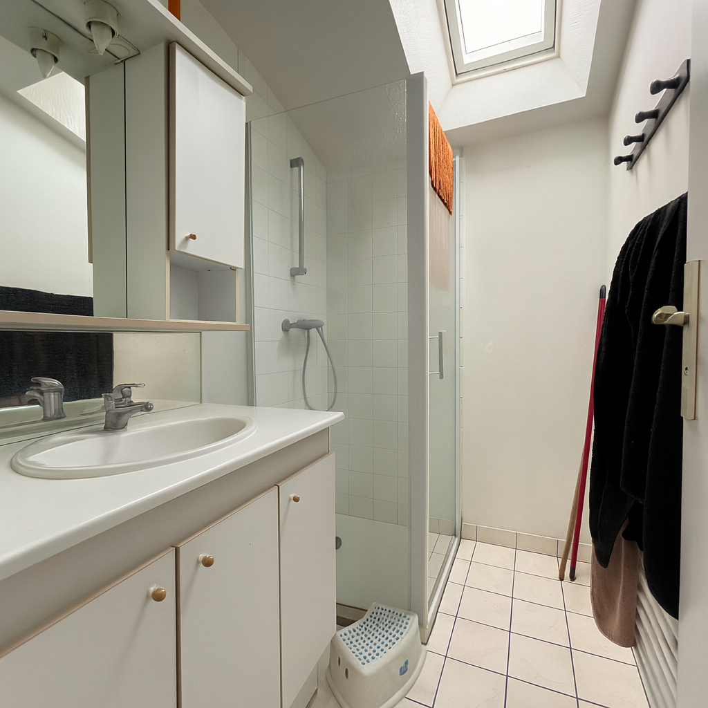 À l’étage, un palier dessert deux grandes chambres (13 m2 et 14 m2) ainsi qu’une salle d’eau bien agencée.